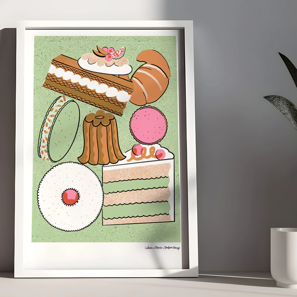 Edición limitada de láminas impresas en serigrafía, obras numeradas y firmadas por la ilustradora Josefina Schargorodsky. Ideal para coleccionar, enmarcar y vivir con arte. Creada especialmente para los y las amantes de la pastelería.